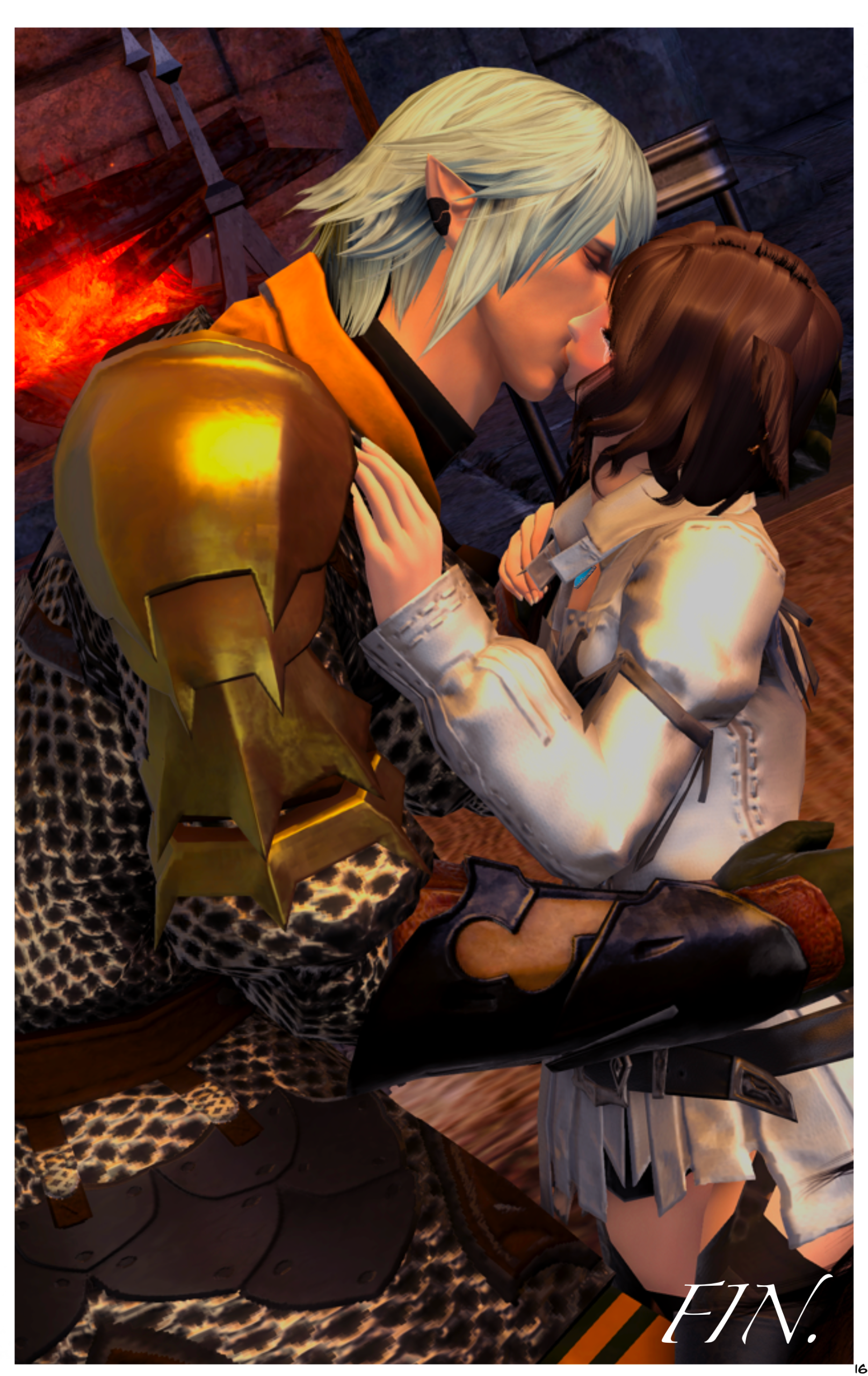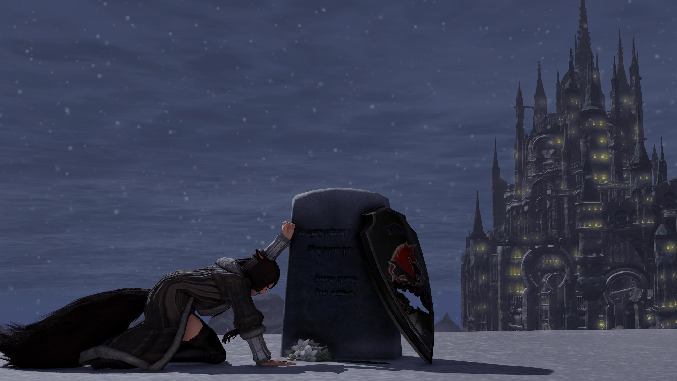 Gaining access to Ishgard was no easy task. The people were still incredibly leery of outsiders, being shut off for so long. However, be it for Zoha or because he wanted to be nice regardless, Haurchefant was able to convince his house, House Fortemps, to take them in. To repay them for their kindness, Zoha and R'azure took on new tasking with the House, aiding them where they needed. During this time, Haurchefant made more frequent visits to the manor, and he and Zoha were becoming quite good at the number of excuses for why they needed to spend time together. This was mostly thanks, in no small part, to Tataru, who pointed out the need to continue being discrete as Haurchefant did vouch for their group to be allowed into the city, and House Fortemps was providing ever bit of protection to them despite being “wanted criminals” back home.A couple of weeks went by. Zoha continued to help where needed and her friends discussed what to do next. One afternoon, Haurchefant invited her out to Camp Dragonhead's chocobo stables. Upon arrival, he presented her with a beautiful black chocobo for her very own, that he had trained himself from it's birth. The creature was unlike any other chocobo she'd seen, bred exclusively for the harsh climate in Coerthas. She was a bit lost in its beauty when Haurchefant cleared his throat and proceeded to explain to her that Ishgardian tradition of courtship dictated the presentation of a chocobo for betrothal. In complete shock she asked him to repeat himself, only this time he simply asked for her hand. He laughed as she turned a new shade of red, but she joyfully accepted his offer. He mentioned that while some might become suspicious, given her new steed, Ishgardians were too polite to straight up ask...and quite frankly, he didn't care as he wanted to have her for himself regardless of what others thought.Zoha was beyond elated. She was ecstatic to be able to share the news with Tataru, who insisted on making her friend's dress, and her brother R'azure. They were both thrilled, though with the war becoming worse she was disappointed they couldn't share the news with others yet. Their plans were cut short, however, as the siblings were requested to accompany Alphi, a recent Ishgardian friend, Ysale, and one of Ishgard's well known Dragoons, Estinien, on several missions in Dravania. The journey would be lengthy, so they packed their things, said their goodbyes, and set off.The journey was anything if not enlightening. The group learned a great many of things and tackled a great many of problems. They befriended a few new races that Zoha and R'azure had never even seen before, and saw sights that many others would probably never see in their lifetimes. Estinien was certainly interesting company. Zoha's thoughts on him, as quiet as he was, was that he was full of himself and too caught up in his personal affairs. Nevertheless, he was useful and a decent combat companion. Ysale turned out to be slightly better company, though Zoha often felt concerned for her emotional well-being. Regardless of Zoha's personal thoughts, the group got the information they needed and completed the tasks they had set out to do. They returned to Ishgard to share their journey and findings.Upon arriving back home, as she now considered Ishgard to be such, they shared their newfound information with everyone else. Ser Aymeric personally volunteered to take the information to the Ishgardian leadership. While everyone waited for the politics to be decided on, Haurchefant approached Zoha and asked if she would be willing to go through an Eternal Bonding Ceremony that night. With political unrest building in Ishgard now, he was worried they would have little time in the future to devote to one another, at least for a while. The original plan was to finally announce their relationship after things had settled, and therefore be easier to explain and accept. But things didn't seem to be doing that at all. If anything, they were getting worse. If the two were to wed now, the only ones who could be present would be Tataru and R'azure. After seeking their advice on the situation, she agreed this was the best course of action. Preparations were quickly and quietly made, and an ordained Ishgardian acquaintance, sworn to secrecy, met them at the designated area.And so, in an undisclosed location outside of Camp Dragonhead, as the stars began to light that evening's sky, Zoha and Haurchefant pledged themselves to one another, with R'azure and Tataru as their only witnesses. Tataru's sewing skills were second to none, as the dress she'd worked on while Zoha had been away shown beautifully against the twinkling of the snow under them. As they said their final vows to one another, Zoha and Haurchefant sealed the bonding ceremony with rings and a kiss. R'azure could not have been more proud of his sister. After a few congratulations were said, Zoha hugged her brother and changed so the group could return back to the city. That night, Zoha and Haurchefant stayed in his private chambers, blissfully unaware of what awaited them the following day.In the morning, ill news arrived at the manor. Haurchefant was needed immediately as Aymeric was unsuccessful at negotiations and was now under arrest, with accusations of heresy and treason. Friends were called upon to help and both Zoha and R'azure were asked to accompany. The plan didn't really go as well as hoped, though, and all of a sudden everyone found themselves in the middle of a heated battle. Fighting to just keep themselves from being overwhelmed, Zoha and R'azure did their best, utilizing everything they had learned up to this point to save themselves and their friends. Just when it seemed like things were coming to a head, Haurchefant called to Zoha to assist where he was. As she ran through, she was unaware of a blast from behind that went straight for her.Haurchefant saw the blast before anyone else. Moving quicker than he'd ever moved, he c