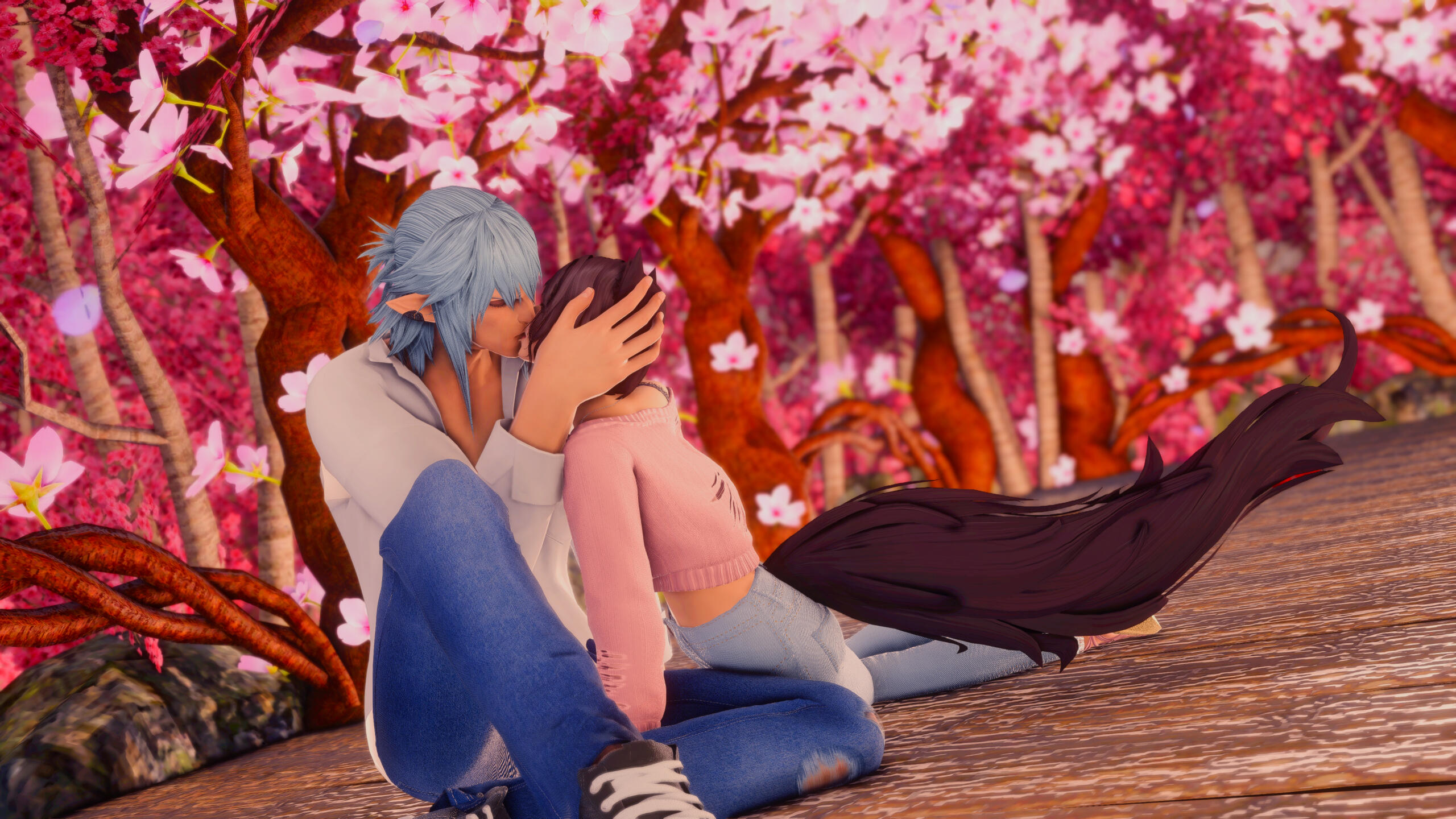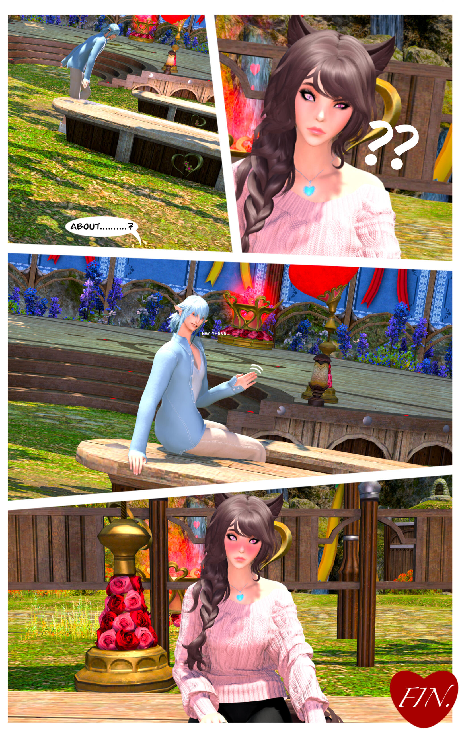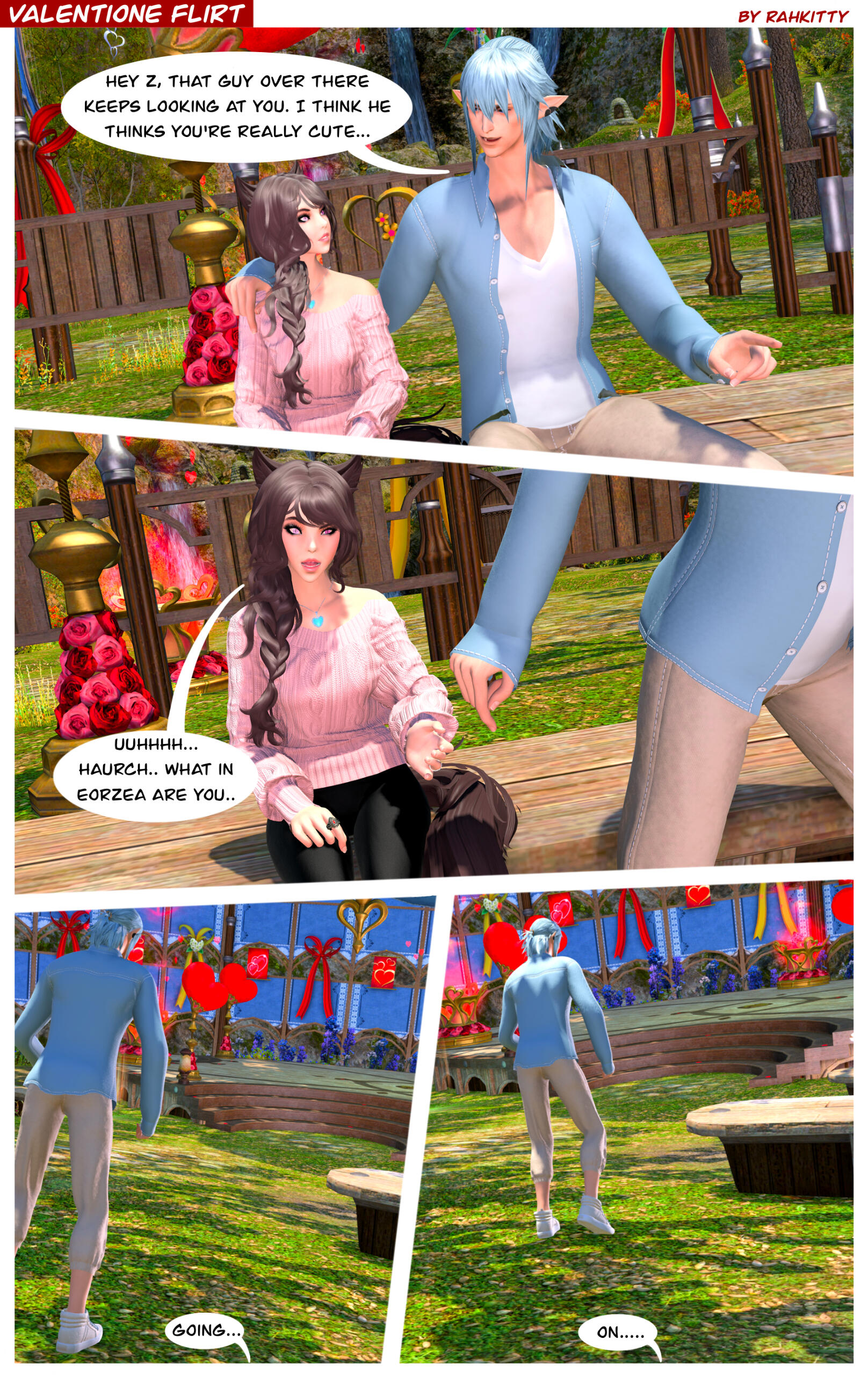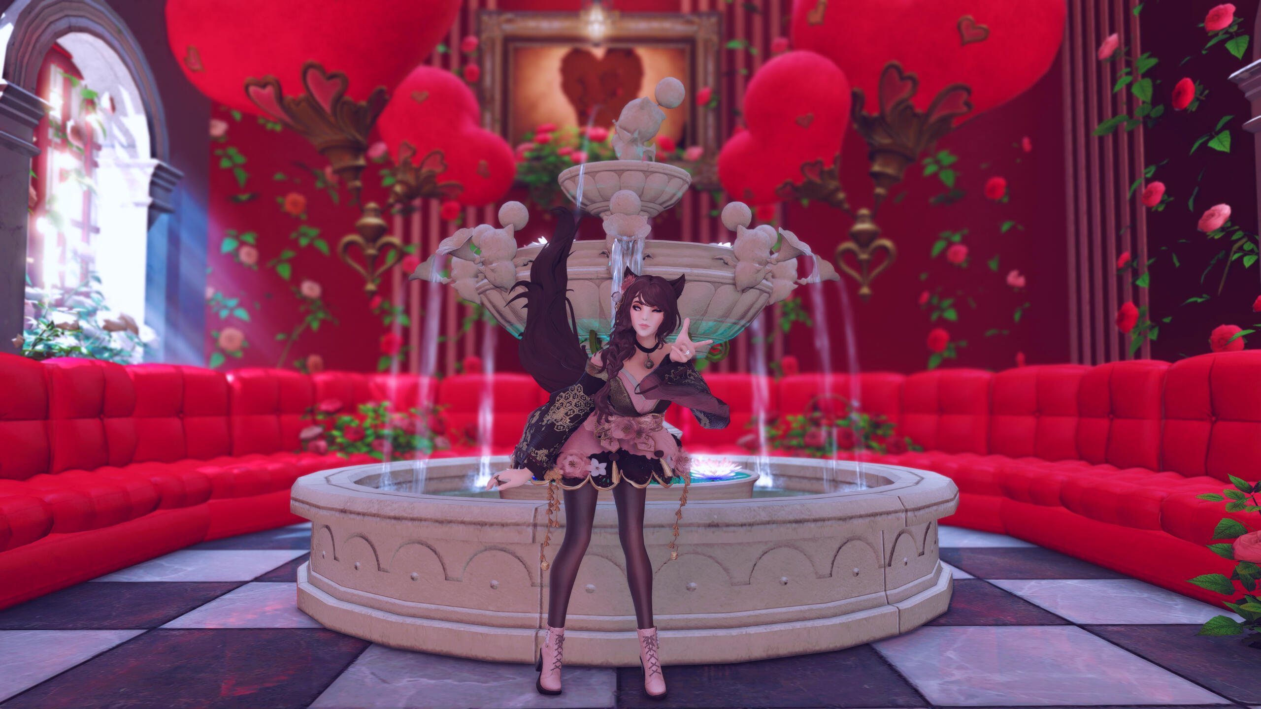 R’zoha is very positive, friendly and upbeat with everyone she knows or meets. She’s fairly introverted, though, so doesn’t handle lots of people as comfortably as other folks might. And while being very friendly, she’s still very quiet/shy around new people. Despite that, however, she’s very open and boisterous around those she knows well and considers a friend, so often times she is mistaken for being more extroverted than she actually is. Regardless, she does always try to help others find happiness as that brings her the most joy in her own life. Rarely focusing on her own accomplishments, she delights in hearing about the achievements of others around her.It doesn’t show often, but she is also incredibly sassy around anyone she’s most comfortable with, her younger brother, or when taunting her enemies. It’s only occasionally slipped out during meetings where she’s trying to bite her tongue. She did grow up in Limsa Lominsa, so she swears a lot and is also extremely competitive, both mostly due to being surrounded by the pirate culture. While she tries to hide or bottle her emotions, her ears and tail are a dead giveaway for how she’s feeling as they will always move according to her current mood. She will also head bump the people she loves most, as a sign of affection. When it comes to things she’s passionate about, she can sometimes be moody and emotional. She blushes easily and, while it’s pretty cute, this can sometimes frustrate her if it’s pointed out.Her default mode, when she’s with friends, is very excitable, chatty, a little clumsy, and extremely distractible. She is fairly intelligent but if something else is interesting then it has all of her attention, so she can sometimes miss details of a conversation or situation because of that. This especially happens when she’s around moogles or moogle related things. They’re her most favorite for their squishy, plump adorableness and she keeps a secret apartment in Ul’dah, to house all of her moogle related memorabilia (it’s not an addiction unless it becomes a problem, right??). The only people in Eorzea who currently know about this are her younger brother, who loves to tease her over it, and her husband Haurchefant, who’s very supportive and even encourages it, because he thinks it’s really cute when she gets excited about her interests.Her favorite food is strawberry cake and her favorite color is pastel pink (most of her wardrobe is this color). While she prefers to remain comfortable and mobile in her gear, there is a part of her that enjoys dressing up and looking really pretty for events, even if she ends up being a wallflower for most of them. Her favorite pastimes are drawing, baking, and singing (to herself, not around others) and she’s very skilled in all three. Even though she is introverted, she can definitely appreciate going out with friends from time to time, as much as cuddling up with some cocoa and a good book. She loves music and is always excited to get new recommendations from others and, despite not being well versed in it, she also loves dancing a lot as well.While considered attractive by many others, her physical appearance is much shorter than most Miqo’te her age and her chest isn’t as “well-endowed” as some of her peers. Despite her thinking these are issues, they’re never noticed by anyone else because it’s her pretty smile, bright eyes, joyful laughter, and fun personality that wins most folks over. She’s 26yrs old, 5’2”, and has dark brown, long wavy hair, that’s kept in a loose braid, and a matching long silky tail. Her left eye is a dark pink, while her right eye is a very pale pink. Both eyes used be dark pink, but the events at the Battle of Carteneau left her right eye the way it is now. While it was initially thought that this was due to aether overexposure from the mysterious flash of light on the battlefield, it isn’t until she learns of her ancient/Azem-self, Euphrosyne, that she finds out they had pale pink eyes. The unknown flash of light at Carteneau, coupled with receiving the Blessing of Light at the same time, was merely the trigger for this effect. All of her other shards also have a pale pink, right eye.She is not without fault though. She has trouble relinquishing control in situations or missions, or delegating tasks to others. Her Type-A personality shows a lot here, because she’ll often default to “well I can just do it myself”. She has trouble asking for help, and should she lose control of whatever situation she’s in it causes her a lot of stress, and she’ll get frazzled easily. She’s very much a perfectionist and will frequently criticize herself for not doing or saying things as “perfectly” as her mind made her think it should have been. She’s very prideful of her work and always wants to make sure she does a good job. This occasionally does come with an ego, as she might get a bit smug whenever she accomplishes a particularly difficult task.Unfortunately, she does also carry a heavy weight in the form of survivor’s guilt. Her parents were murdered when she was very young and, while they forced her to hide with her younger brother, she sadly saw the whole event unfold. This is compounded when she becomes the WOL, as there are more occasions where she loses others despite her best efforts. She’s only able to begin working through this after seeing her parents again in the Altiascope. Because of their past though, she is extremely protective of her little brother, as he is with her too. They ended up both receiving Hydaelyn’s Blessing and therefore share most of the WOL’s duties, so they see each other often in their work and are very close and supportive of each other.Despite her struggles, she still manages to remain resilient in difficult situations, or in the face of failure. Her optimism and confidence are often anchors for others around her, who may lose their willpower over the c