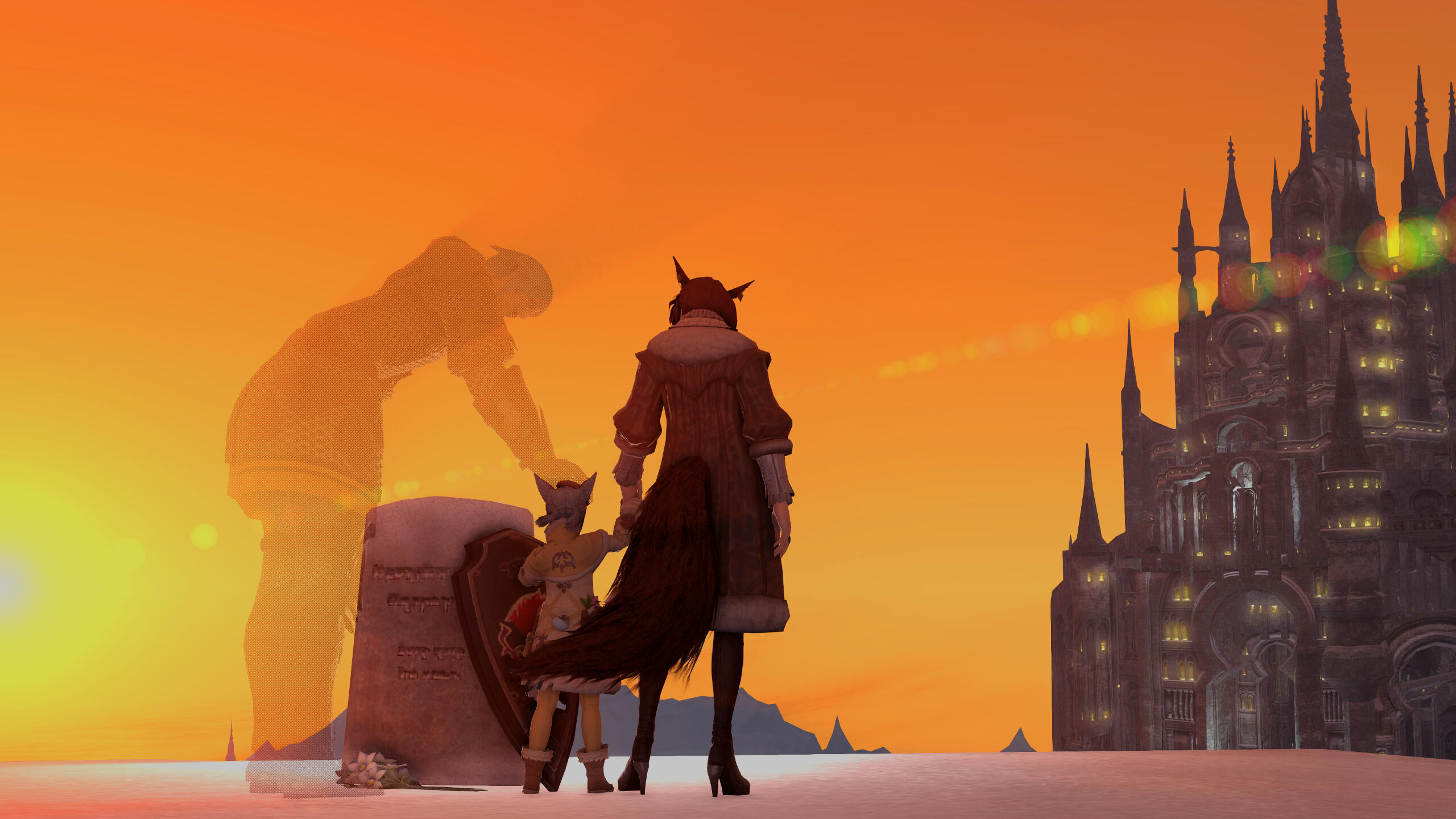 This hero's story begins long before her birth. Her father, R'antha Nunh, was a well established Ala Mhigan nunh of his tribe in Gyr Abania. He was a proud and vain Miqo'te, with dark skin, a hardy laugh, and stubborn personality. Taller than most other males in the tribe, he had long blonde hair that was kept back most of the time, a fluffy unkempt tail, large fluffy ears, pink eyes, and muscular build. The tribe sat between Ala Mhigo and The Black Shroud, so he would occasionally venture out to ensure none of the Keeper tribes from the Shroud came into his area.During one of these checks, he came a little too close to the Shroud's border and ran into Azure Kaleh, a female Keeper. She was as beautiful as a lily in bloom on a clear, moonlit night, with fair skin, long brown hair, small ears, blue eyes, silky tail, and thin build. She was soft-spoken, graceful, and very observant of her surroundings. She knew he was there even before he did.It wasn't quite love at first sight. There was a bit of back and forth, of who was on who's territory first. R'antha foolishly assumed his status and charm would be enough to impress her. He was wrong. For every one of his advances, Azure had a counter, which served to only drive him more mad. Over the next few weeks, he would find himself “checking on the borders” again, to see if she was there. She always was. With each passing visit their banter eventually softened, until one day R'antha realized he was visiting more to see her than to check borders. Azure had known her feelings for him, for some time, but allowed him the time he needed to realize his. Their love was as powerful as the drowning storms in all the world's seas and sweeter than the spices of distant, foreign lands—a dizzying tempest in a garden of the most fragrant flowers and nectar.R'antha wanted to be with Azure more than any other female he'd known...but he knew he couldn't bring a Keeper back to his tribe. Azure, as well, knew her tribe would never approve mating with a Seeker. They decided to meet in secret and kept this up for several months, until Azure found out she'd become pregnant with their child. Despite the severe taboo of abandoning their tribes, R'antha especially as a nunh, their love for each other was just too strong. So they snuck away, in the quiet hours one morning, to the city state of Gridiania, catching an airship to Limsa Lominsa, becoming wed in an Eternal Bonding Ceremony, and making a living as city merchants. Just a few months later, on a stormy evening in 1551, their daughter was born.Having been very prideful of his name and nunh status, R'antha had kept his tribe name and surname, despite not actually being a nunh of any tribe by then. As such, he wanted his daughter to also carry the tribe name and his given name. Azure, being a Keeper, insisted on giving her daughter her given name. And so, together, they named her R'zoha Antha.As far as Miqo'te go, R'zoha was as short as they come, with pink eyes, a sweet face, and dark brown hair. She was as energetic as her father, and just as stubborn. She did however, inherit her mother's beauty...though not her grace, as she often barreled through areas like a grand buffalo.During these early years R'zoha enjoyed the sights and sounds of the bustling center that was Limsa Lominsa, taking in all the cultures and traditions with great interest and amazement. She especially loved watching the various adventurers that passed through.In 1554, Azure became pregnant with their second child, a son. When he was born, as they did with R'zoha, the two parents named him using the traditions from both their tribes. Per Keeper convention, he received his mother's name as his own, and per Seeker convention, received his father's tribe name. Thus, R'zoha became a big sister to R'azure Tia. He was a quiet child, with blonde hair, blue eyes, and mischievous smile. Everything seemed to fall perfectly in place for the happy family.